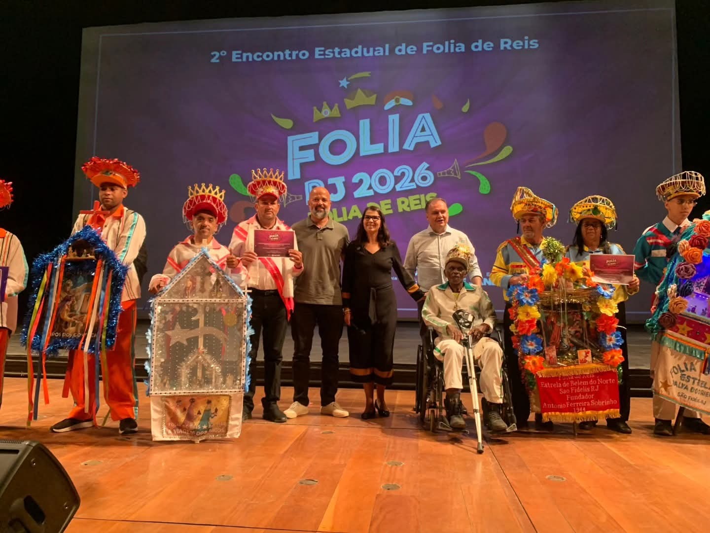 Nesta sexta-feira, 30 de janeiro, a Secretaria Municipal de Cultura de Cardoso Moreira marcou presença no 2º Encontro Estadual de Folias de Reis, um evento realizado no icônico Theatro Municipal do Rio de Janeiro. Promovido pela Secretaria de Estado de Cultura e Economia Criativa do Rio, o encontro reuniu grupos de diversas regiões do estado, em uma celebração vibrante dos saberes e das tradições populares.