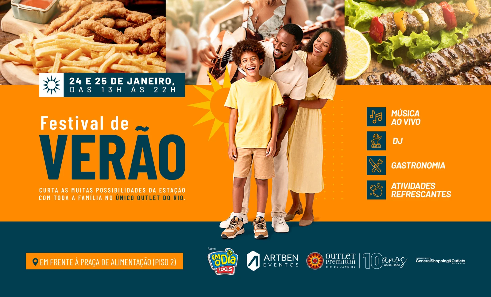 Nos dias 24 e 25 de janeiro, o Outlet Premium Rio de Janeiro será o centro das atenções com o Festival de Verão, um evento totalmente gratuito que promete encantar toda a família. Com o apoio da FM O Dia e a produção da ArtBen Eventos, as festividades acontecerão das 13h às 22h. A proposta é oferecer uma alternativa de lazer ao ar livre, unindo cultura, música e compras, tudo em um só lugar, com acesso facilitado pela Estrada Rio-Petrópolis.